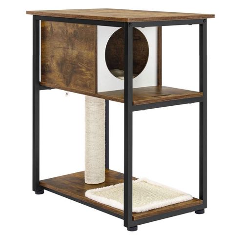 Znany ze swojego brązowego vintage koloru, drapak wykonany jest z wysokiej jakości materiałów, w tym płyty wiórowej oraz stali, co zapewnia trwałość oraz stabilność konstrukcji. Jego wymiary, wynoszące 59 x 36 x 67 cm (dł. x szer. x wys.), sprawiają, że doskonale nadaje się do małych i średnich kotów, stanowiąc idealne miejsce do wypoczynku i zabawy.