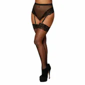 Dreamgirl prezentuje stylowe stringi w rozmiarze M, wykonane z delikatnej siateczki oraz eleganckiej koronki. Model ten wyrożnia się wysokim stanem oraz subtelną satynową tasiemką z tyłu, co podkreśla jego nowoczesny i kobiecy charakter. Dodatkowo wyposażony jest w praktyczne odpinane oraz regulowane paski do pończoch, ktore pozwalają dopasować bieliznę do indywidualnych potrzeb i stylizacji.