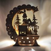Ta ręcznie wykonana dekoracja 3D w kształcie drewnianego domku emanuje ciepłem i blaskiem dzięki zintegrowanemu oświetleniu LED, które delikatnie rozświetla przestrzeń. Stworzona ze sklejki o grubości 3 mm przez polskiego producenta, łączy nowoczesny design z ekologicznym podejściem, zapewniając niezawodne źródło świątecznej radości na lata.