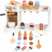 Ta wyjątkowa drewniana kawiarnia-lodziarnia wykonana z wysokiej jakości drewna sosnowego, sklejki i MDF zapewnia dziecku niezliczone godziny kreatywnej zabawy. Dzięki bogatemu wyposażeniu zawierającemu ekspres do kawy, 3 gałki lodów, wafelki, lody na patyku oraz akcesoria kawiarnicze, maluch może wcielić się w rolę prawdziwego baristy i sprzedawcy lodów.