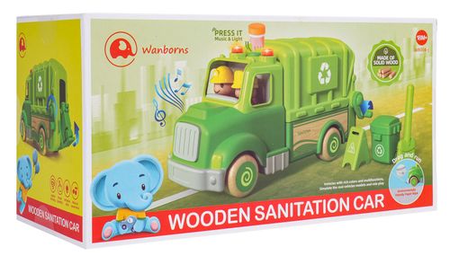| Interaktywna śmieciarka z funkcją dźwięku i światła dla dzieci od osiemnastego miesiąca życia. Zabawka wykonana została z najlepszej jakości materiałów: drewna i plastiku. Nie posiada ostrych krawędzi. Śmieciarka posiada działający podnośnik kosza na śmieci (korbka) i funkcję wysypywania. Na dachu śmieciarki znajduje się przycisk uruchamiający melodie i efekty świetlne w postaci mrugających światełek. W zestawie znaleźć możemy 2 figurki, kosz na śmieci, zmiotkę i znak ostrzegawczy. Zabawka zasilana jest bateriami typu 3 x AG13 (w zestawie). Funkcje: - zabawka dla dzieci od trzeciego roku życia, - wykonana ze świetnej jakości materiałów, plastiku i drewna, - ruchome drewniane kółeczka, - funkcja podnoszenia kosza na śmieci i wysypywania odpadów (manualnie), - otwierany i zamykany kontener na odpady oraz podnoszony w górę i dół, - akcesoria w zestawie, - efekty dźwiękowe: melodie, odgłosy startu pojazdu, jazdy, klakson, - efekty świetlne: mrugające światełka, - zaczep na sznureczek do ciągnięcia. |