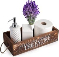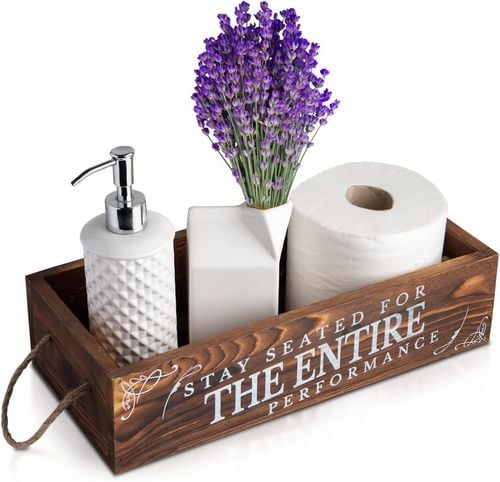 Drewniana taca łazienkowa w odcieniu rustykalnego brązu to praktyczny dodatek, który wprowadza do wnętrza element stylu i subtelnego humoru. Produkt został zaprojektowany z myślą o osobach ceniących estetykę vintage oraz tradycyjne wykończenia. Wykonanie z solidnego drewna zapewnia konstrukcji odpowiednią stabilność, a naturalna struktura materiału nadaje pomieszczeniu przytulny charakter. Dzięki swojej formie, taca ułatwia organizację przestrzeni, pozwalając na estetyczne przechowywanie niezbędnych akcesoriów łazienkowych. Jest to rozwiązanie łączące dekoracyjność z codzienną użytecznością, które sprawdzi się w różnych aranżacjach domowych.