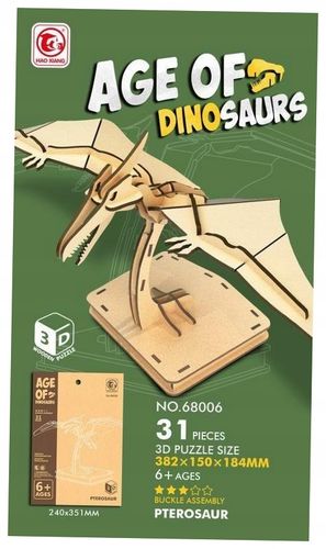 Fascynujące puzzle 3D Age of Dinosaurs z pterozaurem to doskonała zabawka edukacyjna, która przeniesie dzieci w prehistoryczny świat dinozaurów. Ten wyjątkowy model łączy zabawę z nauką, rozwijając umiejętności manualne i wyobraźnię przestrzenną.