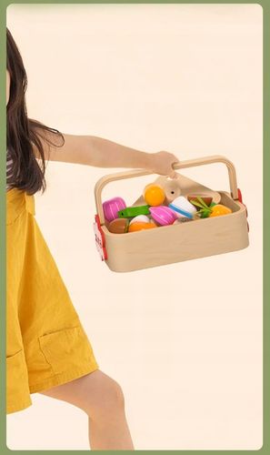 ✔️**Kompletny zestaw edukacyjny** - 9 różnorodnych owoców z magnesami, drewniany nożyk, deska do krojenia i estetyczny koszyk z uchwytem do przenoszenia.
