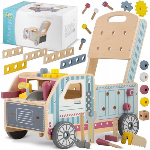 Ten wyjątkowy drewniany chodzik pchacz RK-874 Ricokids łączy w sobie funkcje edukacyjne z aktywną zabawą. Wyposażony w liczne elementy interaktywne jak śrubki, zębatki, tablicę kredową oraz kształty do dopasowywania, stymuluje rozwój umiejętności motorycznych oraz zdolności poznawczych. Dzięki ergonomicznemu uchwytowi idealnie dopasowanemu do dziecięcych rączek, maluch może bezpiecznie eksplorować świat nauki i zabawy.
