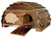 Ten wysokiej jakości drewniany domek dla jeża, prosto od polskiego producenta, wyróżnia się solidnym wykonaniem z drewna impregnowanego przez opalanie, co zapewnia wyjątkową odporność na deszcz, mróz i inne warunki atmosferyczne. Estetyczne wykończenie i unikalny, nowoczesny design czynią go nie tylko schronieniem, ale także piękną dekoracją tarasu czy ogrodu, idealnie integrującą się z otoczeniem.