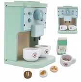 Ten wyjątkowy drewniany ekspres do kawy wyróżnia się najwyższą jakością wykonania z naturalnego drewna, zapewniając trwałość i bezpieczeństwo użytkowania. Kompletny zestaw zawiera ekspres z ruchomym ramieniem i pokrętłem, 2 filiżanki, mleko do kawy oraz 4 różnorodne kapsułki kawowe, które umożliwiają dziecku wcielenie się w rolę prawdziwego baristy i stworzenie niezliczonych scenariuszy zabawy.