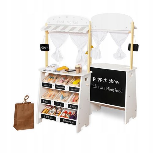 Klasyczny, biało-naturalny wygląd straganu z drewna dopełnia każde wnętrze, a solidna konstrukcja gwarantuje długotrwałe użytkowanie. Zabawka ta to nie tylko edukacja i rozwój, ale również stylowy element wystroju pokoju dziecięcego.