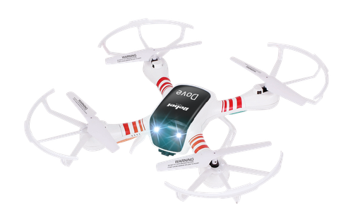Zadanie ułatwiają 6-osiowy stabilizator oraz funkcja auto trim, które zapewniają stabilne oraz precyzyjne pilotowanie. Ponadto pilot zdalnego sterowania o zasięgu do 70 m ułatwia zapanowanie nad maszyną. Dodatkowymi atutami są funkcje kompasu oraz powrotu do domu, za pomocą której możesz sprowadzić drona w miejsce startu. Zaletą Dove jest zwinność, dzięki czemu możliwy jest start z rzutu oraz wykonywanie powietrznych akrobacji, które urozmaicą zabawę. Urządzenie zostało dodatkowo wyposażone w diody LED, więc zabawa może trwać do późnych godzin wieczornych bez obaw, że stracisz je z pola widzenia.
