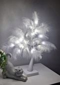 Ta wyjątkowa lampa w kształcie drzewka z piórami o wysokości 47 cm wyróżnia się oryginalnym designem, który łączy elegancję z subtelnym blaskiem. Wykonana z wysokiej jakości tworzywa sztucznego i delikatnych piór, zapewnia stabilne oświetlenie LED w ciepłej barwie, idealnie rozświetlając przestrzeń i dodając jej wyrafinowanego charakteru.