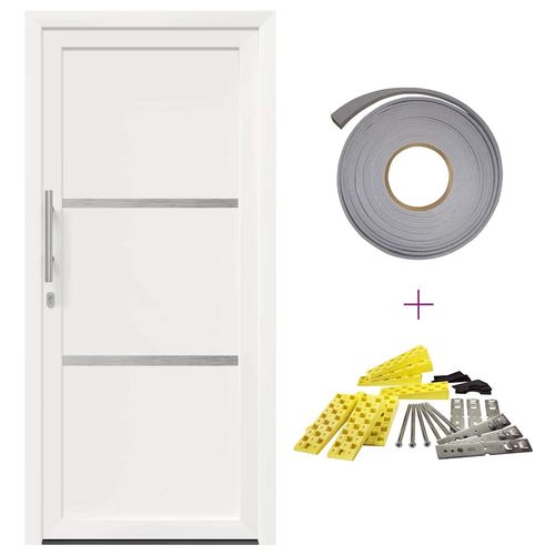 Te drzwi frontowe mają gładkie wykończenie i nowoczesny design, suitable for co tworzy zachęcające wejście. Łączą prostotę z użytecznością, łatwo wpasowując się zarówno w salony, jak i przedpokoje. Ich prostokątny kształt dodaje charakteru każdemu wejściu.