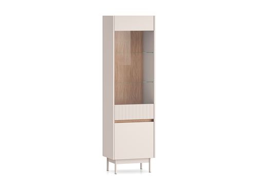 Witryna Dunea 02 to mebel, dzięki któremu przechowasz i wyeksponujesz swoje ulubione przedmioty. Mebel podzielony jest na dwie zamknięte części. Dolna to miejsce niedostępne dla oczu Twoich gości. Schowasz w nim obrusy czy ręczniki. Górna część to przestrzeń podzielona dwiema szklanymi półkami tworzącymi trzy wnęki. Dzięki przeszklonym drzwiczkom wyeksponujesz ulubione, porcelanowe filiżanki czy piękną, stylowa zastawę. Wybierz witrynę Dunea i zachowaj porządek w swoim wnętrzu.