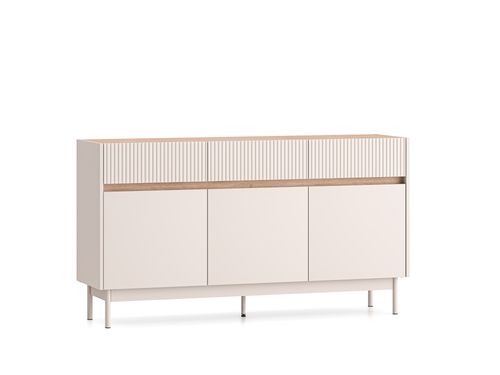 Duża komoda Dunea 05 to idealny mebel do przechowywania. Za potrójnymi drzwiczkami kryje się sześć pojemnych wnęk. Przechowasz w nich ubrania, ręczniki czy zastawę stołową. Górną część mebla tworzą trzy szuflady, idealne na dokumenty lub domowe tekstylia. Szeroki blat będzie idealnym miejscem do wyeksponowania eleganckich wazonów lub pamiątek z podróży. Wybierz komodę Dunea i zachowaj porządek w swoim wnętrzu.