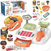 ✔️**KOMPLETNY ZESTAW 36 AKCESORIÓW** - Kasa z kalkulatorem, skaner, waga, koszyk, produkty spożywcze, pieniądze, karty płatnicze i smartfon zapewniają pełną zabawę w sklep.