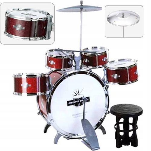 Zestaw składa się z 1 dużego bębna z pedałem, 2 średnich bębnów, 2 mniejszych bębnów, 1 wysokiego talerza, 2 pałeczek do gry oraz wygodnego krzesełka. Dzięki temu Twoje dziecko będzie mogło doskonalić swoje umiejętności w komfortowych warunkach.