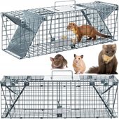 Ta metalowa żywołapka model 65cm na kuny, szczury, lisy, wydry, łasice i koty wyróżnia się solidną konstrukcją z ocynkowanej stali, która zapewnia wyjątkową trwałość i niezawodność. Z dwoma zapadkami i automatycznym zamknięciem, skutecznie łapie zwierzęta bez ryzyka ucieczki, gwarantując humanitarne rozwiązanie problemu z nieproszonymi gośćmi.