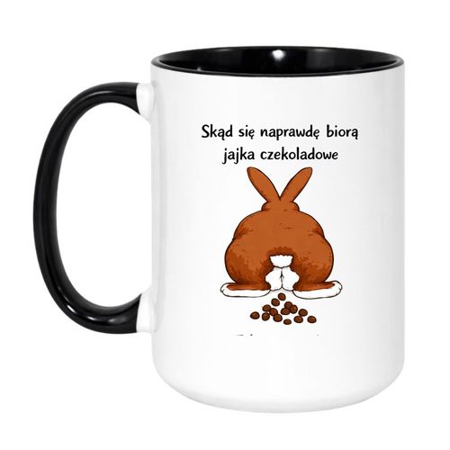 Śmieszny kubek na Wielkanoc z napisem „Skąd się naprawdę biorą jajka czekoladowe” to ceramiczny kubek prezentowy dla osób, które lubią absurdalny humor, świąteczny luz i gadżety z pomysłem. Ten kubek wielkanocny świetnie sprawdza się jako prezent na Wielkanoc dla znajomego, partnera, partnerki albo kogoś, kto ma dystans do klasycznych motywów świątecznych. To zabawny kubek wielkanocny, który łączy codzienną użyteczność z memiczną grafiką i przewrotnym żartem opartym na obrazie.
