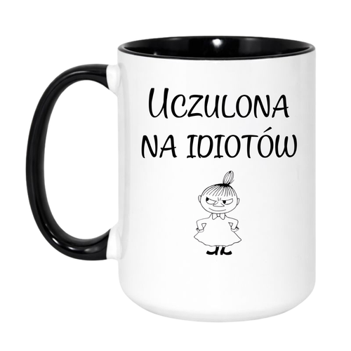 Masz wrażenie, że głupota wokół Ciebie osiągnęła niebezpieczny poziom? Jeśli tak, ten kubek jest dla Ciebie! Z kultową Małą Mi i wymownym napisem "Uczulona na idiotów", idealnie sprawdzi się jako subtelna (lub wcale nie) wiadomość dla otoczenia. Świetny do biura, domu albo jako prezent dla kogoś, kto nie owija w bawełnę.