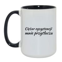Jeśli poranna kawa to jedyny powód, żeby wstać z łóżka, a ciężar egzystencji czujesz nawet przy scrollowaniu TikToka – ten kubek jest dla Ciebie. Nie udaje wesołego, nie tuszuje brutalnej prawdy – wręcz przeciwnie. To śmieszny prezent z czarnym humorem dla każdego, kto wie, że życie czasem jest memem, a czasem memem z podpisem „nie śmieszy”.