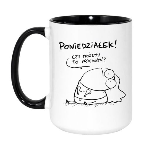Masz w otoczeniu kogoś, kto w niedzielę o 18:00 już opłakuje weekend? A może sam jesteś człowiekiem, który w poniedziałek rano komunikuje się wyłącznie spojrzeniem pełnym rozpaczy? W takim razie ten śmieszny kubek dla dorosłych z tekstem o poniedziałku jest stworzony właśnie dla Ciebie.