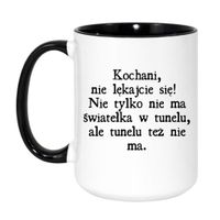 Kubek z napisem „nie ma światełka w tunelu, bo nie ma tunelu” to śmieszny prezent dla realistów, ironistów i wiecznych sceptyków. Trafiony w punkt jako kubek dla osoby, która już przestała się łudzić, ale wciąż potrafi się śmiać.