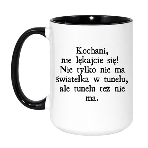 Ten kubek to idealny towarzysz porannej rutyny dla każdego, kto wie, że optymizm to mit. Ale dobry śmiech? On wciąż działa. I nie trzeba do niego tunelu.