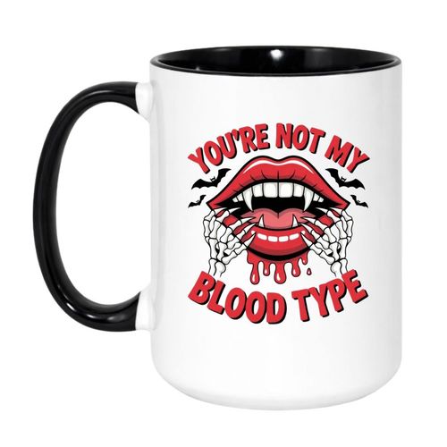 Z charakterystycznym nadrukiem czerwonych ust, kłów i krwistego napisu „You’re not my blood type”, ten kubek mówi jasno: mam styl, mam dystans i mam kawę mocniejszą niż Twoje argumenty.
