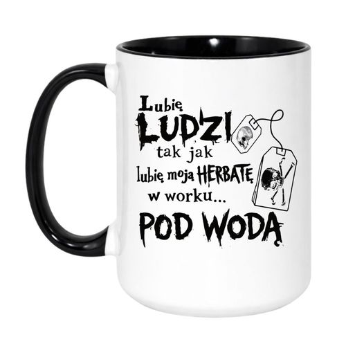 Napis „Lubię ludzi tak jak lubię moją herbatę w worku… pod wodą” to idealna dawka czarnego humoru dla introwertyków, sarkastyków i fanów mocnych tekstów.