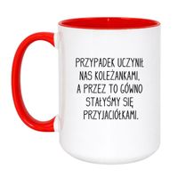 Kubek „Przypadek uczynił nas koleżankami, a przez to gówno stałyśmy się przyjaciółkami” to idealny wybór dla tych, którzy mają przyjaciółkę, z którą łączy ich nie tylko wspólny przypadek, ale również ogromna więź i mnóstwo wspólnych wspomnień. Z odrobiną humoru i szczerości, kubek ten jest świetnym przypomnieniem o tym, że prawdziwa przyjaźń to coś wyjątkowego, nawet jeśli zaczęło się od zupełnie przypadkowego spotkania.