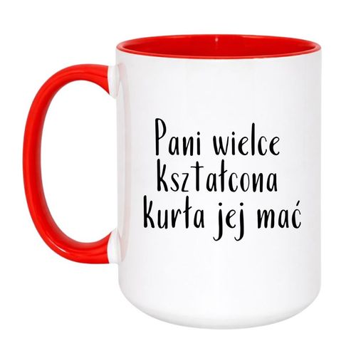 Kubek „Pani wielce kształcona, kurła jej mać” to doskonały sposób na przypomnienie, że prawdziwa mądrość nie potrzebuje tytułów ani sztucznej elegancji. Zamów teraz i pokaż, że wiesz, co naprawdę się liczy!