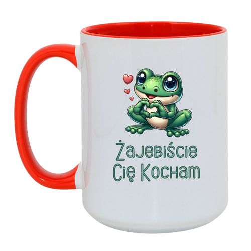 Miłość nie zawsze musi być cukierkowa. Czasem jest zajebiście szczera. Ten kubek z napisem "Zajebiście Cię kocham" i żabką robiącą serduszko to idealny sposób, żeby powiedzieć „kocham Cię” bez lukru, ale z charakterem. Bo nie każdy romantyk nosi różę – niektórzy mają żabę i dobry tekst z jajem.