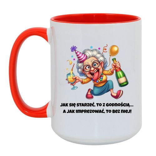 Jeśli urodziny mają być naprawdę wyjątkowe, to nie mogą obyć się bez śmiechu. Ten śmieszny kubek z imprezową babcią i napisem „Jak się starzeć, to z godnością… a jak imprezować, to bez niej!” to prezent, który rozwala system. Idealny dla tych, którzy wiedzą, że wiek to tylko liczba, a prawdziwa energia tkwi w dystansie do siebie i dobrej zabawie.