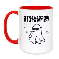 Kubek „Strasznie mam to w dupie” to mistrzowski mix czarnego humoru, luzu i halloweenowej atmosfery. Świetny do codziennej kawy, herbaty albo… magicznego napoju, który pomaga przetrwać dzień.