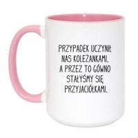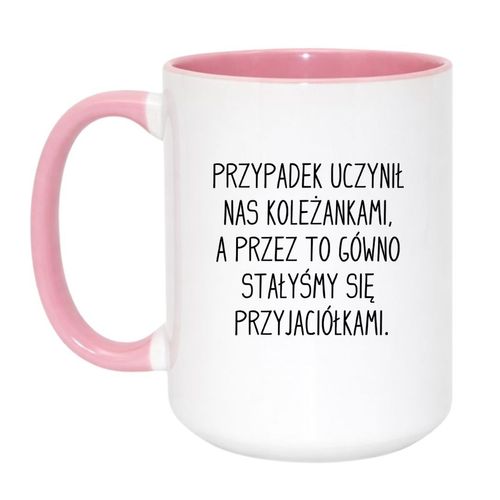 Kubek „Przypadek uczynił nas koleżankami, a przez to gówno stałyśmy się przyjaciółkami” to idealny wybór dla tych, którzy mają przyjaciółkę, z którą łączy ich nie tylko wspólny przypadek, ale również ogromna więź i mnóstwo wspólnych wspomnień. Z odrobiną humoru i szczerości, kubek ten jest świetnym przypomnieniem o tym, że prawdziwa przyjaźń to coś wyjątkowego, nawet jeśli zaczęło się od zupełnie przypadkowego spotkania.