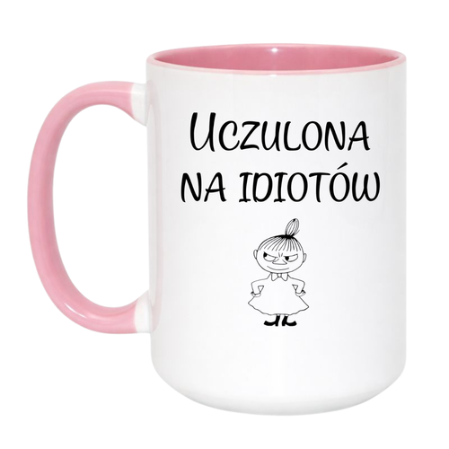 Masz wrażenie, że głupota wokół Ciebie osiągnęła niebezpieczny poziom? Jeśli tak, ten kubek jest dla Ciebie! Z kultową Małą Mi i wymownym napisem "Uczulona na idiotów", idealnie sprawdzi się jako subtelna (lub wcale nie) wiadomość dla otoczenia. Świetny do biura, domu albo jako prezent dla kogoś, kto nie owija w bawełnę.
