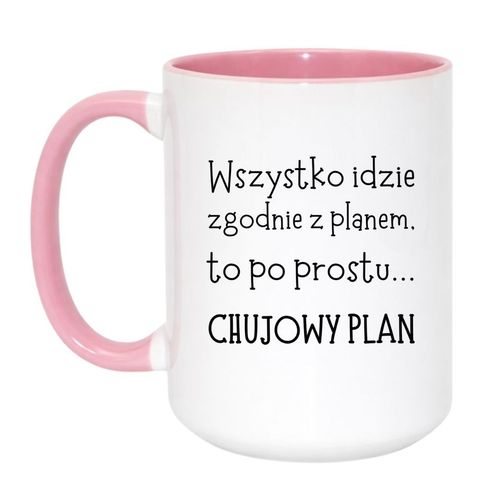 Kiedy życie wali się spektakularnie, ale teoretycznie wszystko idzie zgodnie z planem – to pewnie był po prostu chujowy plan. Ten kubek z wulgarnym napisem to prezent dla każdego, kto z dystansem i ironią podchodzi do codziennych dramatów. Śmieszny, chamski kubek z napisem bez cenzury powie za Ciebie to, czego nie chcesz tłumaczyć współpracownikom, rodzinie czy... samemu sobie. Bo nie wszystko musi być idealne. Czasem wystarczy, że działa. Chociaż chujowo.