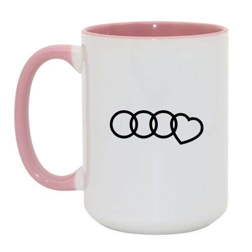 To nie jest oficjalne logo. To symbol stylu życia. Kubek dla tych, którzy kochają jazdę, ale jeszcze bardziej kochają... swoją brykę. Trzy pierścienie i jedno serce – bo tu nie chodzi o markę, tylko o emocje. Ten kubek to subtelny, ale wymowny hołd dla fanów motoryzacji i... miłości do czterech kółek.
