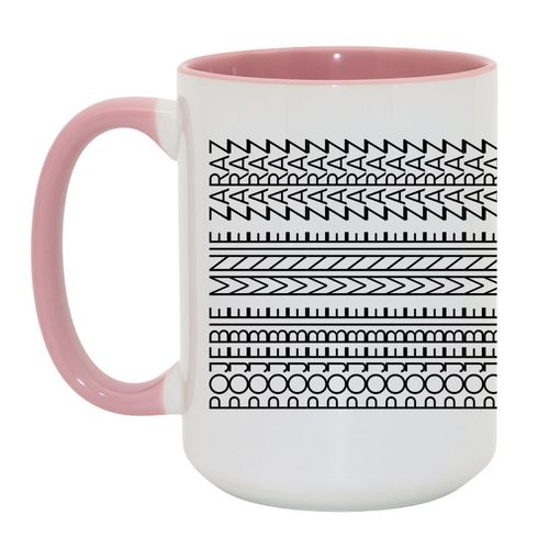 Na pierwszy rzut oka – geometryczna abstrakcja. Designerskie wzorki, hipnotyczne linie, coś między kodem a plakatem Bauhausu. Ale wystarczy przechylić kubek, spojrzeć z odpowiedniego kąta i... bum. Pojawia się napis, którego nie wypada cytować przy babci. I właśnie dlatego ten kubek to absolutny hit.