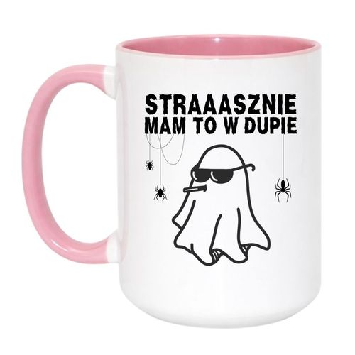 Kubek „Strasznie mam to w dupie” to mistrzowski mix czarnego humoru, luzu i halloweenowej atmosfery. Świetny do codziennej kawy, herbaty albo… magicznego napoju, który pomaga przetrwać dzień.