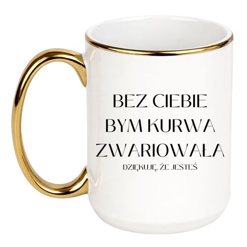 Kubek bez ciebie bym kurwa zwariowała to ceramiczny kubek z humorystycznym nadrukiem, stworzony dla osób, które chcą podarować komuś zabawny, emocjonalny i naprawdę zapamiętywalny prezent. Ten model najlepiej sprawdzi się dla przyjaciółki, siostry, partnerki albo bliskiej osoby, z którą łączy Cię mocna relacja, dystans i wspólny język. Napis „Bez ciebie bym kurwa zwariowała” zamienia zwykły kubek w śmieszny upominek, który jednocześnie bawi i mówi coś ważnego.