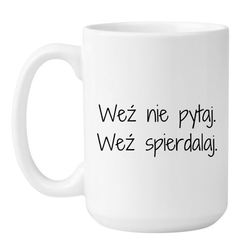 Czasami życie stawia nas w sytuacjach, kiedy nie mamy ochoty na zbędne pytania i tłumaczenia. Ten kubek to doskonały sposób, aby z humorem wyrazić, że nie masz już siły na wyjaśnianie wszystkiego każdemu, kto o coś pyta. Idealny dla osób, które mają dość dociekliwych rozmów i po prostu chcą poczuć spokój podczas przerwy na kawę czy herbatę.