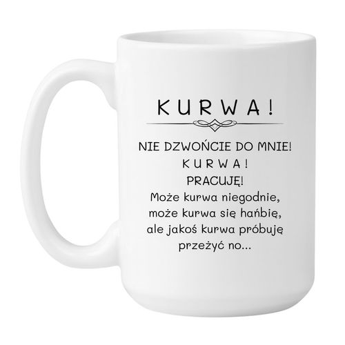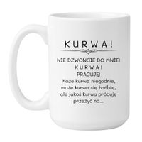 Zamów kubek „Kurwa! Pracuję!” zanim się wyprzeda — a znika szybciej niż twoje chęci do pracy po lunchu.