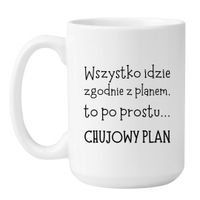 Kiedy życie wali się spektakularnie, ale teoretycznie wszystko idzie zgodnie z planem – to pewnie był po prostu chujowy plan. Ten kubek z wulgarnym napisem to prezent dla każdego, kto z dystansem i ironią podchodzi do codziennych dramatów. Śmieszny, chamski kubek z napisem bez cenzury powie za Ciebie to, czego nie chcesz tłumaczyć współpracownikom, rodzinie czy... samemu sobie. Bo nie wszystko musi być idealne. Czasem wystarczy, że działa. Chociaż chujowo.