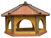 Sześciospadzisty daszek karmnika skutecznie zabezpiecza przed opadami deszczu i śniegu, chroniąc pokarm dla ptaków. Karmnik posiada przygotowane elementy do łatwego montażu na stojaku (sprzedawanym osobno).