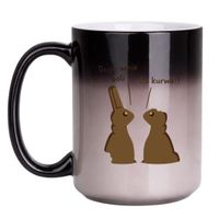 Dodatkową przewagą jest wielkanocny kontekst. Zamiast klasycznego świątecznego kubka z bezpiecznym hasłem dostajesz przewrotny żart osadzony w estetyce czekoladowych figurek. Kubek wielkanocny bez cenzury sprawdza się wtedy, gdy chcesz wręczyć coś zabawnego, zaskakującego i wyraźnie innego niż standardowe prezenty sezonowe. To gadżet, który rozbawia przy wręczeniu, ale zostaje też w codziennym użyciu.