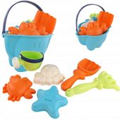 ✅Kompletny zestaw plażowy – zawiera wszystko, czego potrzebuje dziecko do kreatywnej zabawy: wiaderko, konewkę, łopatkę, grabki oraz 3 foremki w kształcie morskich zwierzątek (rozgwiazda, krab, ośmiornica).