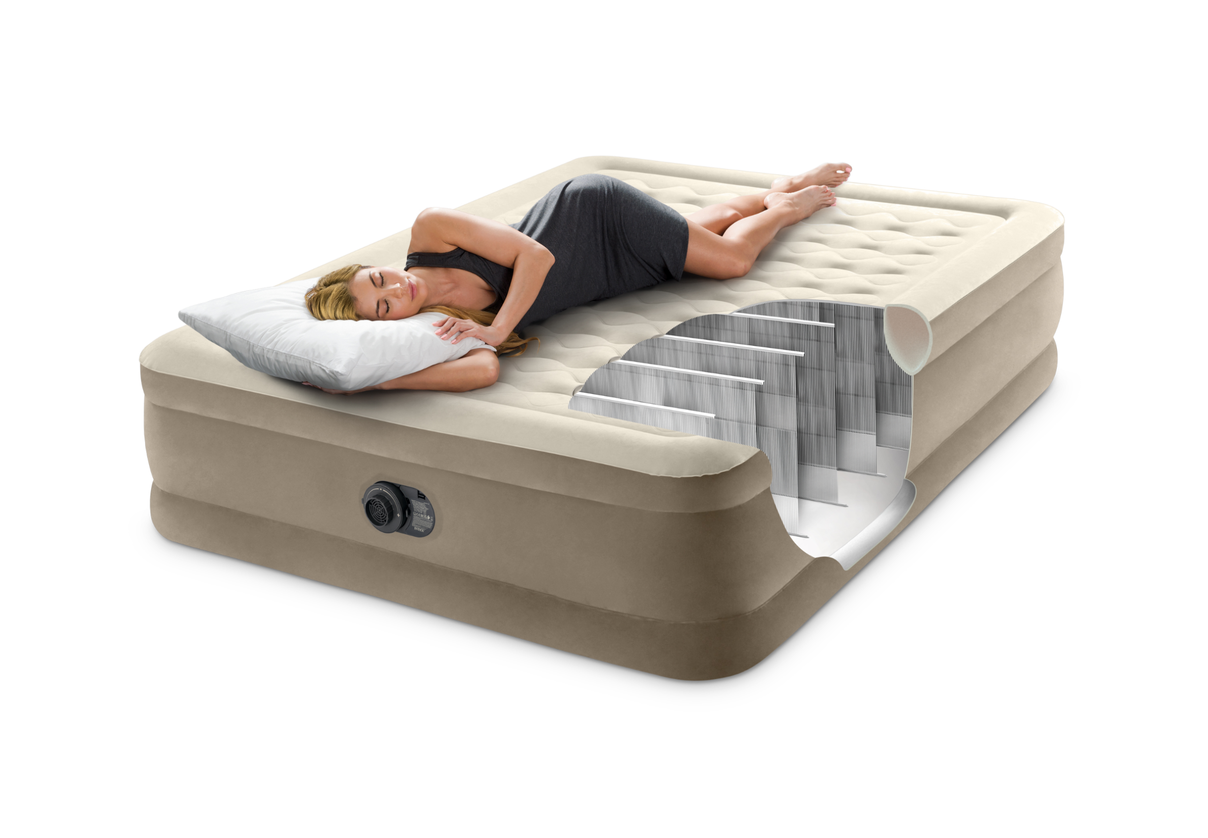 Wysokiej jakości materac firmy INTEX idealnie sprawdzi się jako miejsce do wypoczynku czy do spania. Duże wymiary tego dwuosobowego materaca zapewnią wygodę każdemu, który ceni sobie przestrzeń podczas snu. Podwójny wierzch produktu pokryty jest miłym w dotyku welurowym materiałem, który zapewni większy komfort podczas snu. Materac posiada wbudowaną pompkę (moc 220-240 V), dzięki której produkt będzie gotowy do użycia w bardzo krótkim czasie, a także wzmocnioną podstawę i krawędzie dla jak najlepszej stabilności. Do zestawu dołączona jest łatka naprawcza oraz torba do przechowywania i transportu materaca.