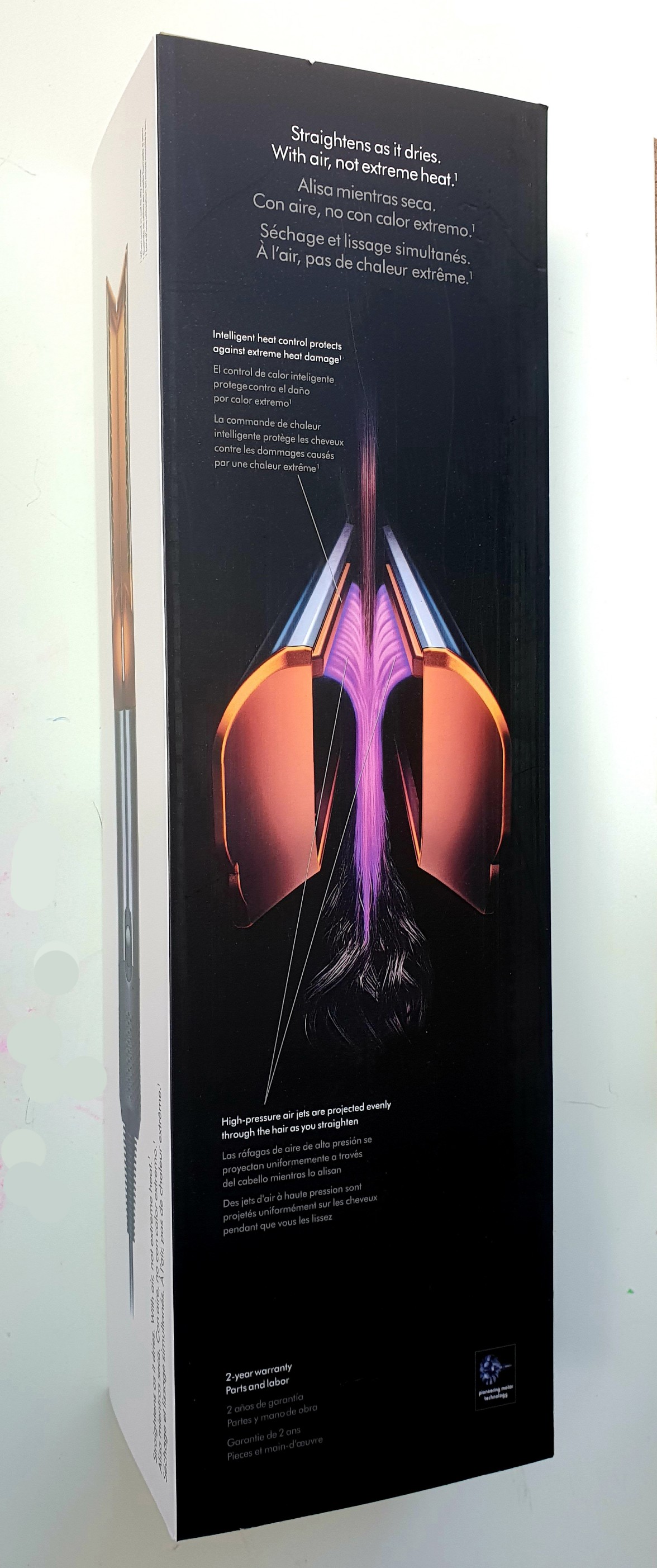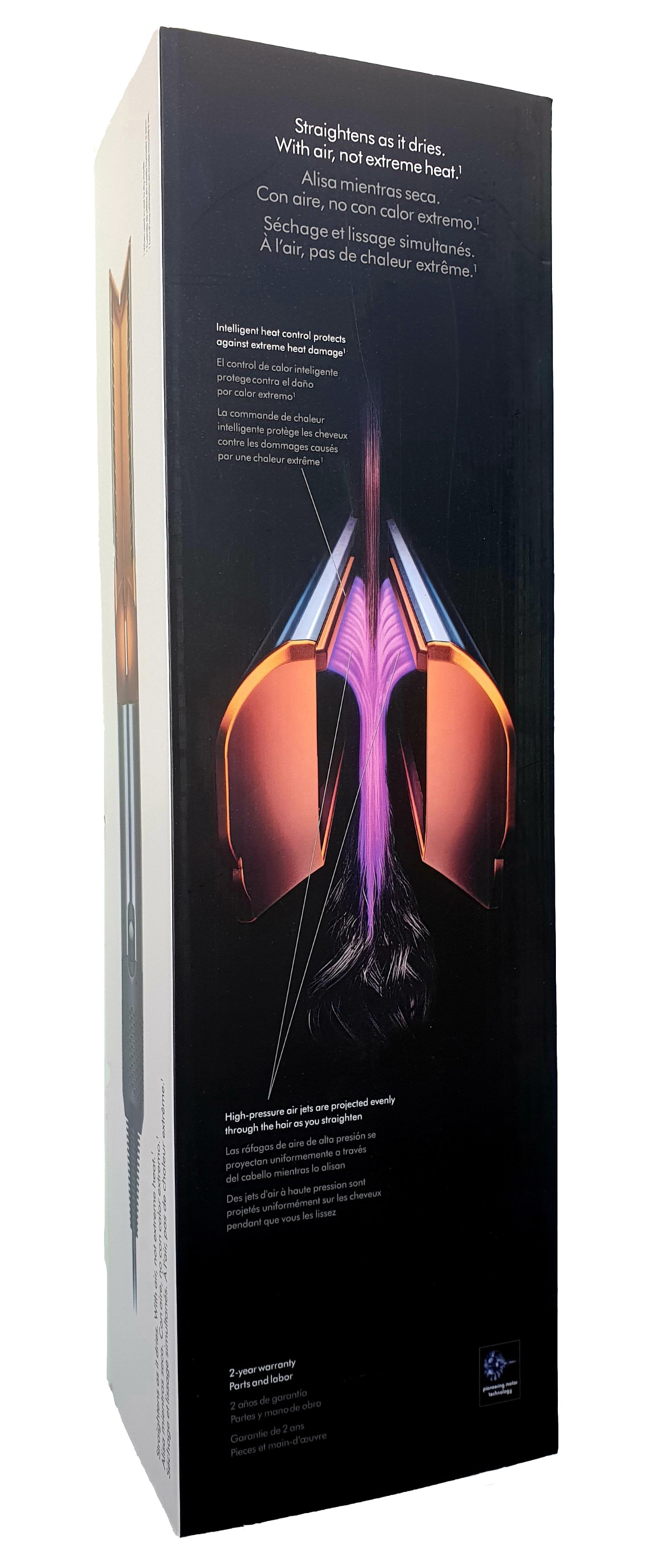 Kluczowa elektronika została przeniesiona do wtyczki, aby odchudzić urządzenie i umożliwić bezpieczne prostowanie na mokro. Zintegrowane zabezpieczenie PRCD zapewnia dodatkową ochronę i jest zaprojektowane specjalnie dla Airstrait™ — można je przewozić w bagażu podręcznym.