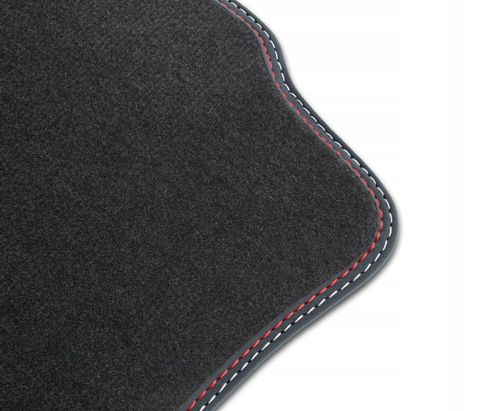 Dywaniki te charakteryzują się eleganckim czarnym kolorem, a ich obszycie skórzaną lamówką w odcieniu nubuku z czerwonymi i białymi nićmi dodaje im szyku i nowoczesności. Dzięki temu stanowią idealne uzupełnienie wnętrza każdej MAZDY 3, nadając jej wyjątkowy wygląd.
