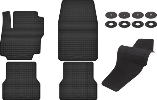 Oferujemy Państwu POLSKIEJ PRODUKCJI zestaw składający się z kompletu 4 sztuk dywaników gumowych ze stoperami oraz dedykowanej osłony na tunel środkowy
